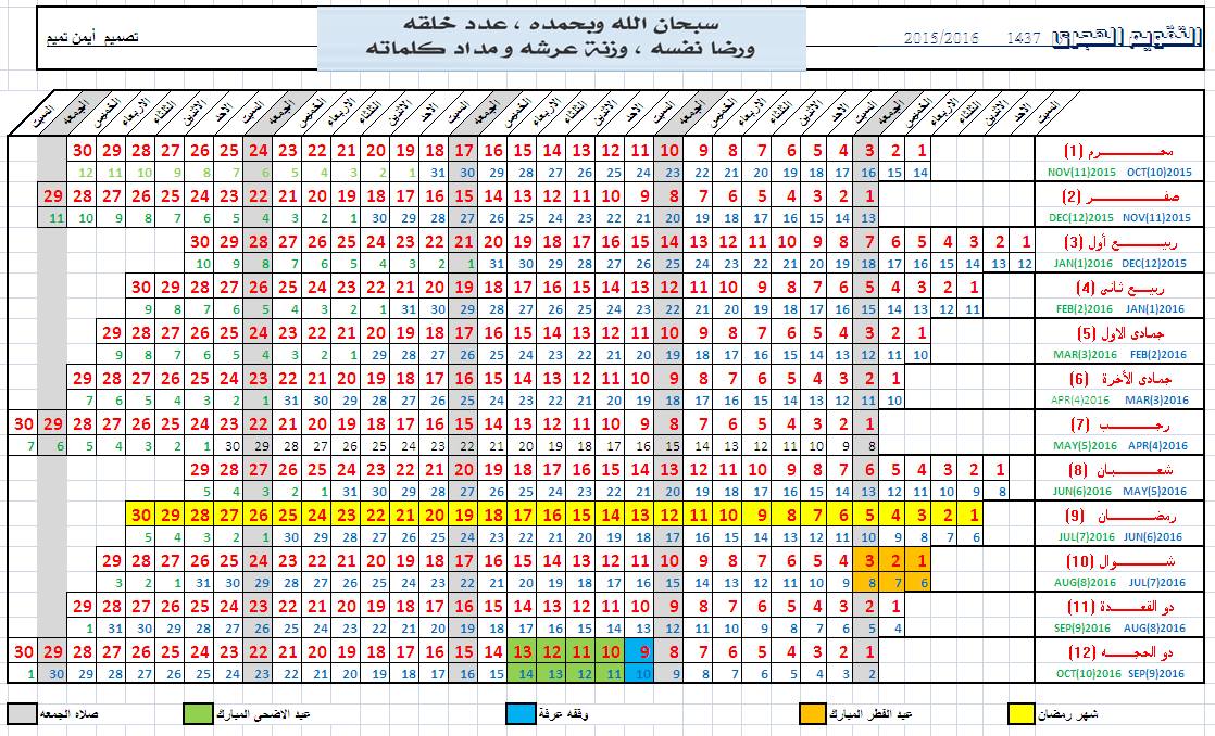 التقويم الهجري 1437 - تقويم ام القرى لعام 1437